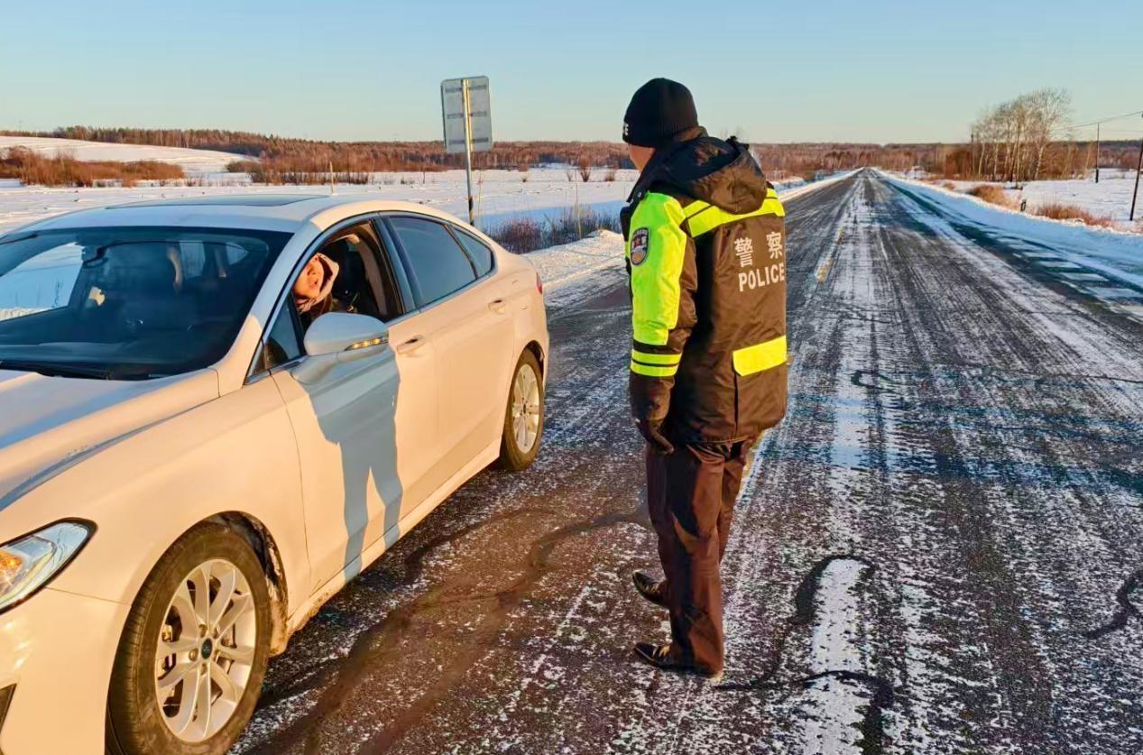 寒夜車輪爆胎 呼瑪交警“警”急救援 暖心服務(wù)顯擔(dān)當(dāng)