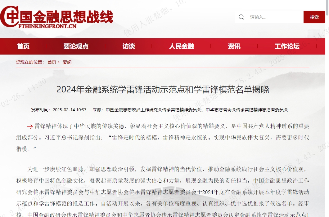 合眾人壽黑龍江分公司榮獲2024年金融系統(tǒng)學(xué)雷鋒示范點稱號