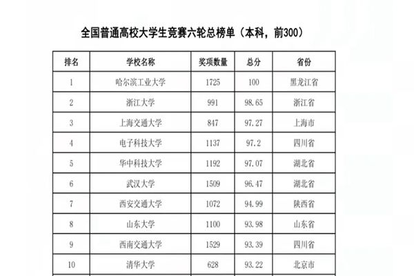 哈爾濱工業(yè)大學連續(xù)三年獲得全國普通高校大學生競賽榜單冠軍