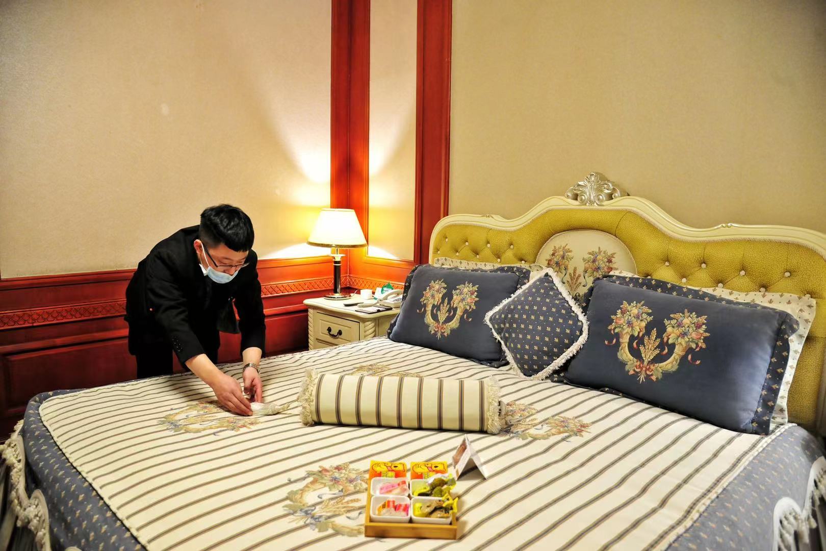 邱冬梅說,為了保證賓客住得安心放心,賓館在疫情防控和安保方面提前做了很多針對性的工作。進入4月初就組織全體員工開展業(yè)務知識及專業(yè)技能、酒店禮儀、員工儀容儀表等崗位技能培訓。