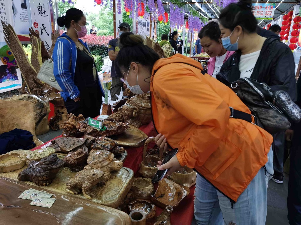 記者在現(xiàn)場看到,牡丹江北山公園的廣場上游人如織,許多市民爭先在網(wǎng)紅月亮秋千、心形燈廊下合影留念。用手機(jī)挨個展柜拍照,記錄下牡丹江非物質(zhì)文化遺產(chǎn)。