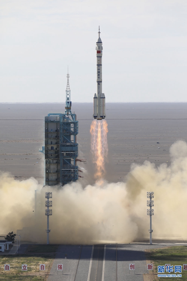 2021年6月17日9時22分,搭載神舟十二號載人飛船的長征二號F遙十二運載火箭,在酒泉衛(wèi)星發(fā)射中心準時點火發(fā)射,約573秒后,神舟十二號載人飛船與火箭成功分離,進入預定軌道,順利將聶海勝、劉伯明、湯洪波3名航天員送入太空,飛行乘組狀態(tài)良好,發(fā)射取得圓滿成功。新華社記者 琚振華 攝