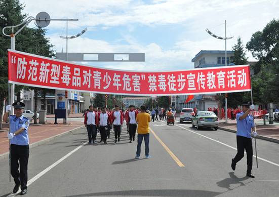 呼中區(qū)禁毒委組織禁毒成員單位,開展以“防范新型毒品對(duì)青少年的危害”為主題的禁毒徒步宣傳活動(dòng)