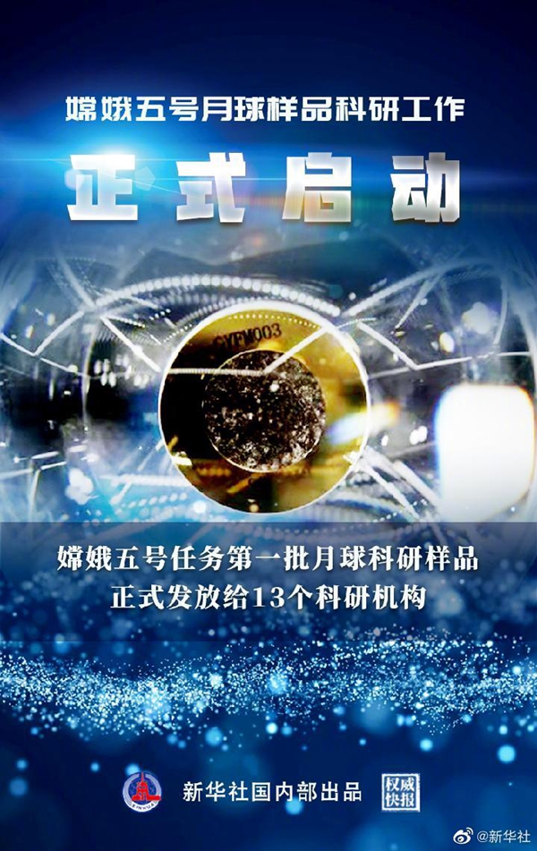 剛剛,國(guó)家航天局探月與航天工程中心在京舉行嫦娥五號(hào)任務(wù)第一批月球科研樣品發(fā)放儀式,標(biāo)志著月球樣品科學(xué)研究工作正式啟動(dòng)。經(jīng)審核,來(lái)自13所科研機(jī)構(gòu)的31份申請(qǐng)獲得通過(guò)。(新華社記者 胡喆 海報(bào)設(shè)計(jì) 苗夏陽(yáng))