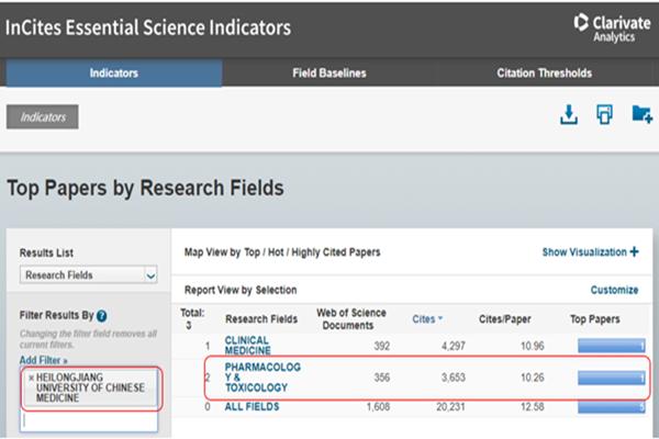 黑龍江中醫(yī)藥大學(xué)藥理學(xué)與毒理學(xué)學(xué)科首次進入ESI全球排名前列