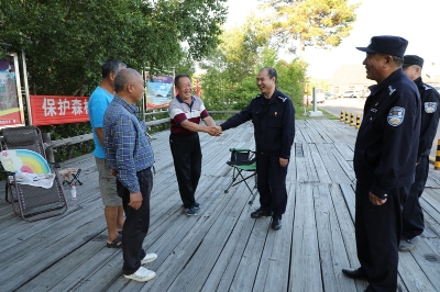 在與游客的交談中,姜明君向游客介紹了漠河市的風土人情,了解他們對景區(qū)管理、旅游開發(fā)規(guī)劃、旅游產(chǎn)品等方面的建議,征求他們對公安民警在護游、便民服務及正在開展的“平安之夏”大會戰(zhàn)等方面的意見,同時向游客宣傳防電信詐騙知識,指導他們下載安裝“國家反詐中心”APP,提高安全防范意識,避免上當受騙。