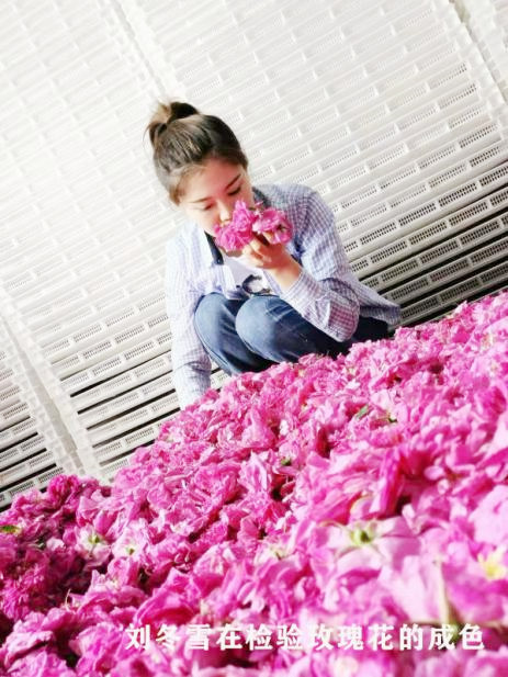 今年32歲的劉冬雪,從小就看著外公王占龍帶領(lǐng)父親及家人試種玫瑰花,剛開始種植品種單一,種植面積小,玫瑰產(chǎn)量低。2009年,正在讀高中的劉冬雪,在外公和父親的影響下,加入到玫瑰花種植工作中,幫助老輩管理生產(chǎn)、銷路、產(chǎn)品創(chuàng)新等多個(gè)環(huán)節(jié)。劉冬雪有文化、肯專研,女孩子對(duì)玫瑰花更是情有獨(dú)鐘,父輩一商量將合作社經(jīng)理的重?fù)?dān)就交給了她。劉冬雪深知近年隨著玫瑰面積和產(chǎn)量的不斷提高,他們還是家庭小作坊模式,“單打獨(dú)斗”地跑市場,只能是小打小鬧。為此,她跑市場、找銷路、先后到云南、山東等地考察,了解鮮花生產(chǎn)和銷售。并函授學(xué)習(xí)了林農(nóng)大專課程,不斷更新鮮花品種,提升鮮花品質(zhì),逐步打開了鮮花銷路。劉冬雪也深入思考,只賣原材料經(jīng)受不了市場的考驗(yàn),她夢(mèng)想建一個(gè)玫瑰花深加工企業(yè),但是,因缺少資金遲遲沒有實(shí)現(xiàn)心中的愿望。
