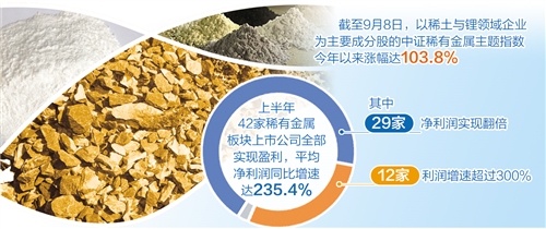 近幾個月,A股稀有金屬板塊呈現(xiàn)上漲行情。截至9月8日,以稀土與鋰領(lǐng)域企業(yè)為主要成分股的中證稀有金屬主題指數(shù)今年以來漲幅已達103.8%。