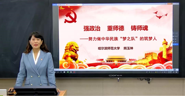 據(jù)了解,本次活動是黑龍江省教育廳慶祝第37個教師節(jié)的系列活動之一,由哈爾濱師范大學(xué)協(xié)辦、全國中小學(xué)繼續(xù)教育網(wǎng)技術(shù)支持舉辦?;顒右浴百s續(xù)百年初心,擔(dān)當(dāng)育人使命”為主題,由哈爾濱師范大學(xué)馬克思主義學(xué)院熊玉坤副教授講授題為《強政治、重師德、鑄師魂——努力做中華民族“夢之隊”的筑夢人》的思政課。課程圍繞提升教師思想政治素質(zhì)和師德水平、更好擔(dān)負(fù)起立德樹人根本任務(wù)展開,分為新時代加強和改進(jìn)師德師風(fēng)建設(shè)的政治要求、新時代師德師風(fēng)建設(shè)的豐富內(nèi)涵、新時代強化師德師風(fēng)建設(shè)的對策思考三個部分,系統(tǒng)回答了新時代中小學(xué)教師思想政治和師德師風(fēng)建設(shè)為什么、是什么、怎么做的問題。