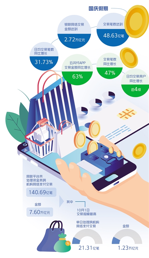 “十一”國(guó)慶假期,銀聯(lián)網(wǎng)絡(luò)交易金額達(dá)2.72萬億元——