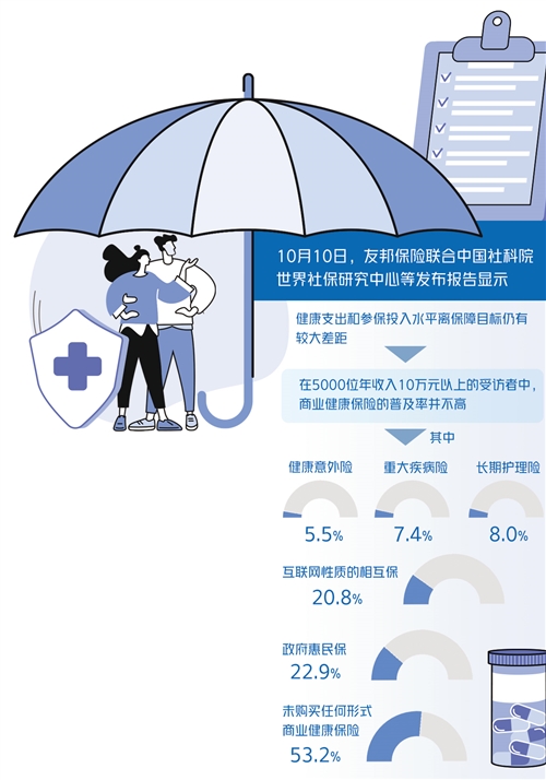 中國社會科學院保險與經(jīng)濟發(fā)展研究中心副主任王向楠在接受經(jīng)濟日報記者采訪時表示,全面建成小康社會后,居民對身體健康和醫(yī)療服務的需求進一步增強,而在我國醫(yī)療衛(wèi)生總費用中,居民自付部分保持在高位,所以居民對提升醫(yī)保水平的需求更迫切,商業(yè)保險可基于醫(yī)保推出更高水平的保障。與此同時,隨著人口老齡化深入,各類帶病人群增多,他們對養(yǎng)老和醫(yī)療在保障資金、物品和服務上均有需求,這為保險業(yè)發(fā)展綜合性健康險產品創(chuàng)造了空間。