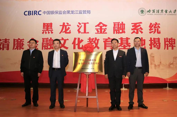 隨后,中國銀保監(jiān)會黑龍江監(jiān)管局黨委書記、局長王柱,哈商大黨委書記孫先民共同為黑龍江金融系統(tǒng)清廉金融文化教育基地揭牌,標志著黑龍江金融系統(tǒng)首個清廉金融文化教育基地的正式成立,清廉金融文化進校園活動正式啟動。