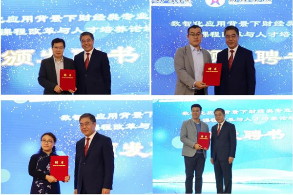 陳西峰為山東財(cái)經(jīng)大學(xué)會(huì)計(jì)學(xué)院院長(zhǎng)王愛(ài)國(guó)教授、華僑大學(xué)工商管理學(xué)院博士生導(dǎo)師楊洪濤教授、哈爾濱工程大學(xué)經(jīng)濟(jì)管理學(xué)院博士生導(dǎo)師楊忠海教授頒發(fā)客座教授聘書,為財(cái)智未來(lái)(北京)教育科技有限公司總監(jiān)聶鑫、中聯(lián)集團(tuán)教育科技有限公司產(chǎn)教融合事業(yè)部總監(jiān)侯劉成頒發(fā)企業(yè)導(dǎo)師聘書。
