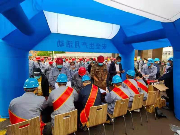 利用“安全生產(chǎn)月”和“安全生產(chǎn)龍江行”活動(dòng)開展之機(jī),組織安全生產(chǎn)月主題宣傳、學(xué)規(guī)程贏獎(jiǎng)品、主題演講比賽、為安全生產(chǎn)獻(xiàn)計(jì)獻(xiàn)策活動(dòng)、直擊現(xiàn)場(chǎng)應(yīng)急處置知識(shí)抽查、安全事故警示片觀看、應(yīng)急救援和CPR救護(hù)比武、300平燒結(jié)作業(yè)區(qū)皮帶著火事故應(yīng)急演練、二級(jí)主管公開課、安全知識(shí)競(jìng)賽等11個(gè)安全活動(dòng),制作板報(bào)49塊、標(biāo)語(yǔ)84個(gè)、橫幅55條、彩虹門3個(gè)、景觀4處、展板、彩旗、飄旗等宣傳用品,讓濃濃的安全教育氛圍時(shí)刻影響著每名員工。