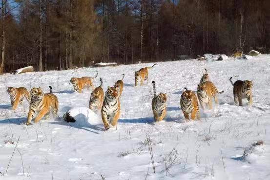 令人震撼的鏡泊湖吊水樓的冰瀑是牡丹江冬季的重要景點之一。在冰凌交錯、銀裝素裹的純凈世界里,世界吉尼斯紀錄創(chuàng)造者——中國懸崖跳水奇人狄煥然,在零下二十多度的鏡泊湖吊水樓冰瀑上,伸展雙臂,凌空一躍,撲向不結(jié)冰的黑龍?zhí)端妫肼洳罱?0米的水中,成為鏡泊湖景區(qū)冬季的一道獨特景觀。鏡泊湖水系水質(zhì)較好,水產(chǎn)資源極為豐富,大約有六十多種魚,冬季體驗鏡泊湖的大網(wǎng)捕魚、小網(wǎng)掛魚,在每年辭舊迎新之際看一場冬捕,絕對是預(yù)示著年年有余好兆頭的絕佳體驗。在漁夫們高亢的號子聲中,800多米長的大網(wǎng)從冰洞中漸漸滑出,胖頭魚、鯽魚、鯉魚等翻滾著、跳躍著,冒著熱氣蹦到冰面,“萬尾鮮魚出玉門”的奇觀景象讓人感嘆不已。橫道東北虎林園是世界上最大的東北虎人工飼養(yǎng)繁育基地和野化訓練基地。在幾代養(yǎng)虎人的辛勤努力下,已繁育活體東北虎1100余只,建有猛虎園、靈長類館、幼虎生態(tài)館、高空玻璃棧道、珍稀動物觀賞園、科普展覽館、觀虎長廊、虎文化廣場等多個景點。在這里,可以感受到獸中之王奔跑在蒼茫林海雪原的風馳電掣。也可以感受到成群東北虎躺臥在皚皚白雪“互談心事”的百般愜意,還可以領(lǐng)略到虎牛相斗、群虎撲食的驚險刺激。
