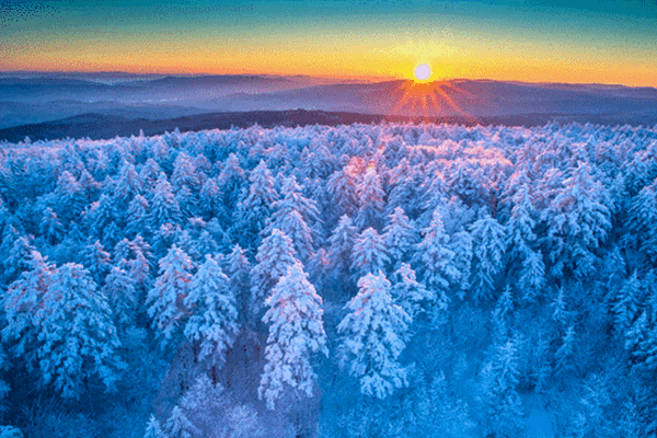 伊春擁有400萬(wàn)公頃的浩瀚森林,高達(dá)83.8%的森林覆蓋率,交相輝映的茫茫林海與皚皚白雪,萬(wàn)里冰封、壯美遼闊的小興安嶺,構(gòu)成了這個(gè)冬天最浩瀚壯美的景色。夏季的天然氧吧,在冬季化為了冰雪童話世界。大雪過后,五營(yíng)國(guó)家森林公園之中,千樹萬(wàn)樹猶如梨花盛開,描繪著冬日的醉人景象。