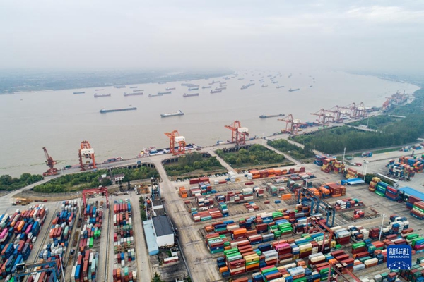 這是10月19日拍攝的武漢陽邏港一期碼頭(無人機(jī)照片)。新華社發(fā)(伍志尊攝)