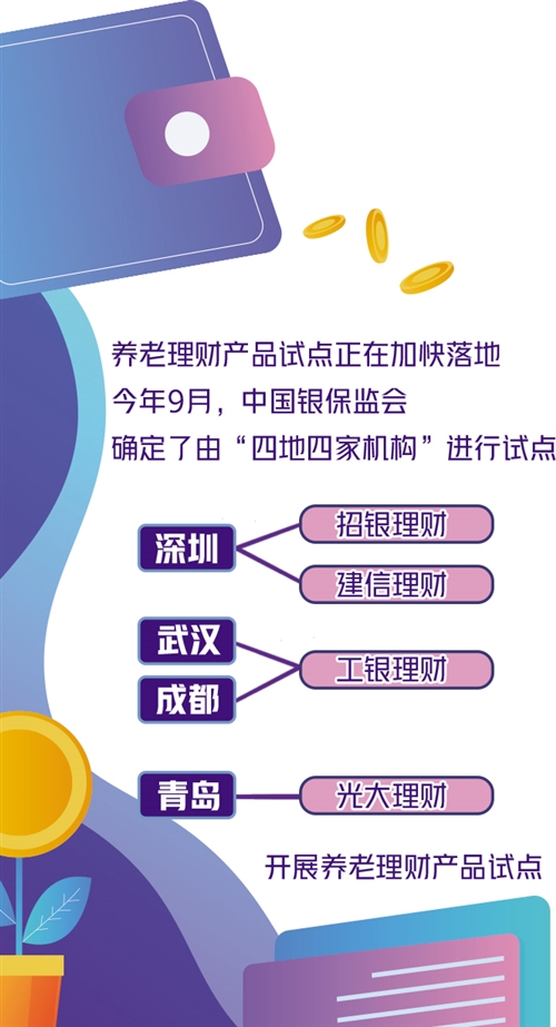 養(yǎng)老理財(cái)產(chǎn)品試點(diǎn)正在加快落地。今年9月,中國(guó)銀保監(jiān)會(huì)確定了由“四地四家機(jī)構(gòu)”進(jìn)行試點(diǎn),即工銀理財(cái)在武漢和成都、建信理財(cái)和招銀理財(cái)在深圳、光大理財(cái)在青島開展養(yǎng)老理財(cái)產(chǎn)品試點(diǎn)。10月下旬,銀保監(jiān)會(huì)首席檢查官、辦公廳主任、新聞發(fā)言人王朝弟在國(guó)新辦發(fā)布會(huì)上透露,養(yǎng)老理財(cái)試點(diǎn)產(chǎn)品已進(jìn)入報(bào)備階段,很快就會(huì)跟廣大消費(fèi)者見面。