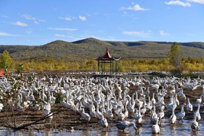 新林林業(yè)局依托當(dāng)?shù)厮葚S美的生態(tài)環(huán)境優(yōu)勢(shì),扶持開(kāi)展“生態(tài)鵝”養(yǎng)殖項(xiàng)目,為職工開(kāi)拓了增收致富的新途徑(崔紅霞 攝)