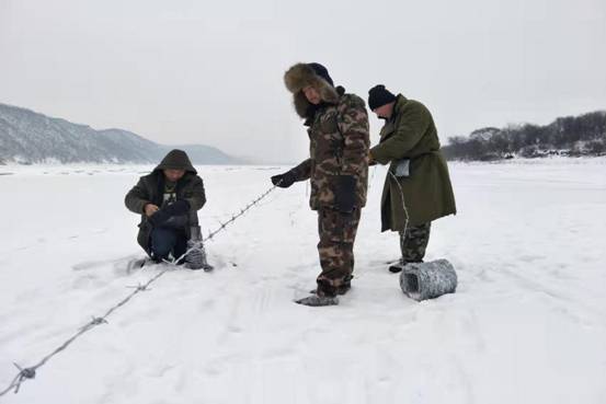 為進(jìn)一步做好防境外疫情輸入工作,最大限度的保護(hù)好人民群眾的生命健康安全,當(dāng)?shù)卣疀Q定在界江沿線架設(shè)防疫隔離墻,阻擋境外物種帶入病毒。紅星林場(chǎng)在接到任務(wù)后,迅速組織人力物力投入戰(zhàn)斗。冰封的江面在冬季暗藏危機(jī),看似一平如鏡的冰下有很多封凍時(shí)形成的漏斗,白雪覆蓋下的區(qū)域更是潛藏著無(wú)數(shù)的冰縫,一腳踏進(jìn)去就會(huì)造成嚴(yán)重的扭傷,而在冰面上放線拉網(wǎng)需要每天抬著幾十斤的鐵蒺藜線軸往返十幾里路程,行進(jìn)在冰面路段上一步一滑,加固鐵線時(shí)還要時(shí)刻小心不被鐵蒺藜劃傷,鉆孔、插樁也要時(shí)刻防止產(chǎn)生大面積的冰裂。