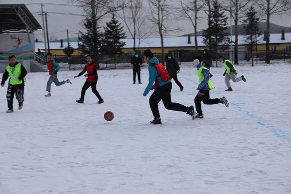 組織開(kāi)展雪地足球比賽。作為學(xué)校的傳統(tǒng)特色項(xiàng)目,雪地足球的比賽成為全校的焦點(diǎn)。精心繪制的雪地足球場(chǎng),為同學(xué)們提供了獨(dú)具興安特色的足球樂(lè)園。