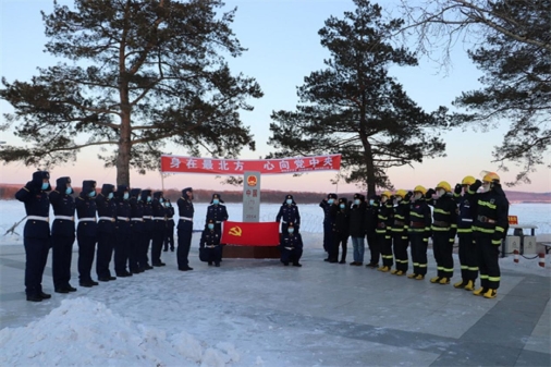 呼瑪縣素有紅色邊疆的美譽,共建聯(lián)盟前往呼瑪縣江邊第173號界碑,在莊嚴(yán)的黨旗和界碑下,呼瑪縣森林消防大隊黨委書記苗亮亮帶領(lǐng)全體黨員同志重溫了入黨誓詞,舉行集體宣誓儀式,旨在進一步強化廣大應(yīng)急人的政治意識,增強黨性觀念,筑牢政治忠誠,永葆紅色氣質(zhì)。