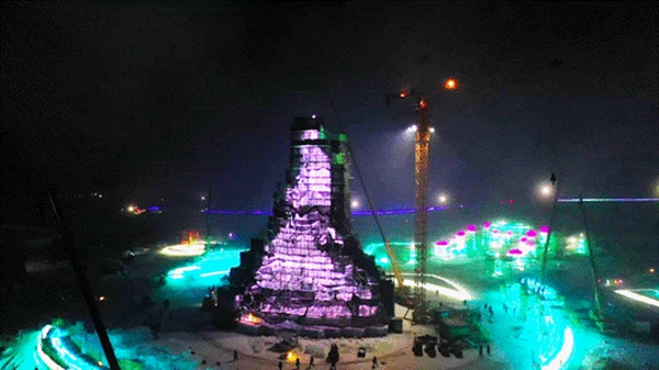 第二十三屆哈爾濱冰雪大世界主塔完成封頂