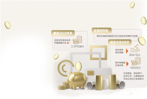 證券出借業(yè)務(wù)俗稱“融券”,是境內(nèi)外資本市場提高二級市場流動性的常見交易制度,發(fā)展較為成熟。截至2020年末,全球證券借貸業(yè)務(wù)存量規(guī)模已達(dá)2.3萬億歐元。在境內(nèi)市場,債券出借和轉(zhuǎn)融通證券出借業(yè)務(wù)發(fā)展較為迅速,截至今年9月末,境內(nèi)債券借貸規(guī)模8041億元,境內(nèi)轉(zhuǎn)融通出借余額1692億元,社保基金、商業(yè)銀行、證券公司、公募基金等市場主體均已獲準(zhǔn)參與。