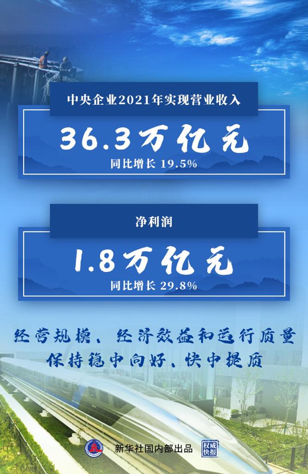 2021年,中央企業(yè)完成固定資產(chǎn)投資(不含房地產(chǎn))3.2萬億元,同比增長10.1%;上繳稅費2.4萬億元,同比增長20%;截至去年末中央企業(yè)資產(chǎn)負債率保持在64.9%,圓滿完成預(yù)期目標。