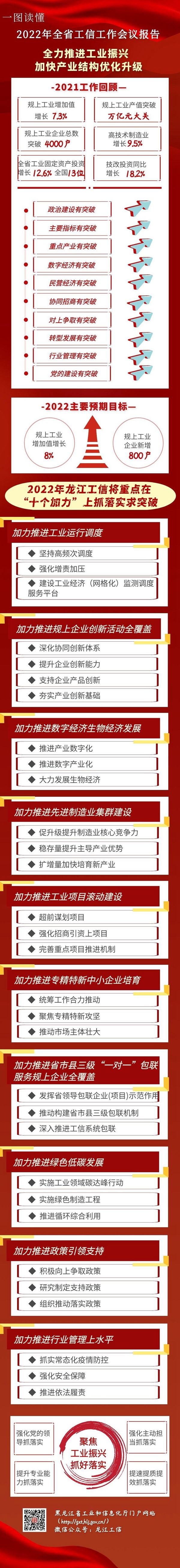 會議強(qiáng)調(diào),新的一年,要堅(jiān)持以習(xí)近平新時(shí)代中國特色社會主義思想為指導(dǎo),全面貫徹落實(shí)黨的十九大和十九屆歷次全會精神,深入貫徹落實(shí)習(xí)近平總書記重要講話重要指示批示精神,按照黨中央“提升制造業(yè)核心競爭力”和省委“要把振興工業(yè)擺上突出位置”的部署要求,完整、準(zhǔn)確、全面貫徹新發(fā)展理念,服務(wù)和融入構(gòu)建新發(fā)展格局,推動(dòng)高質(zhì)量發(fā)展,堅(jiān)持思想思路破題、科學(xué)規(guī)劃引領(lǐng)、配套政策跟進(jìn)、聚焦優(yōu)勢揚(yáng)長、激發(fā)活力補(bǔ)短,“穩(wěn)”字當(dāng)頭、“進(jìn)”字發(fā)力,全力實(shí)施工業(yè)振興計(jì)劃,以發(fā)展壯大數(shù)字經(jīng)濟(jì)、生物經(jīng)濟(jì)等戰(zhàn)略性新興產(chǎn)業(yè)為引領(lǐng),“十個(gè)加力”穩(wěn)存量擴(kuò)增量,鞏固實(shí)體經(jīng)濟(jì)根基,做強(qiáng)先進(jìn)制造業(yè),做優(yōu)現(xiàn)代產(chǎn)業(yè)體系,推動(dòng)工業(yè)經(jīng)濟(jì)實(shí)現(xiàn)質(zhì)的穩(wěn)步提升和量的合理增長,加快龍江工業(yè)再創(chuàng)新輝煌,以優(yōu)異成績迎接黨的二十大勝利召開。