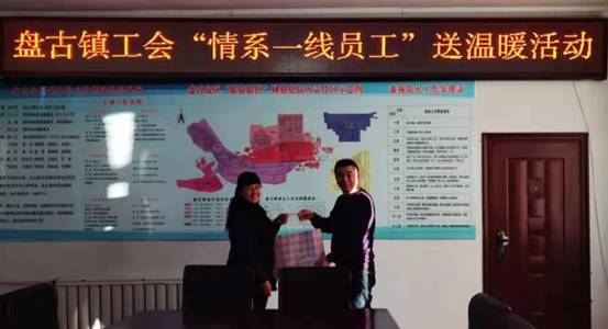 近日,盤古鎮(zhèn)工會為“本命年”職工送來精心準備的特殊“賀卡”和紅襪子并送上祝福與關(guān)懷,表達了對職工多年來扎根基層、任勞任怨、無私奉獻的感謝。同時,針對冬季嚴寒、晝短夜長的情況,盤古鎮(zhèn)為防疫一線職工以及市場監(jiān)管的工作人員送去了暖手寶、手套等防寒用品,讓他們在惡劣的天氣下感受到工會組織的溫暖。