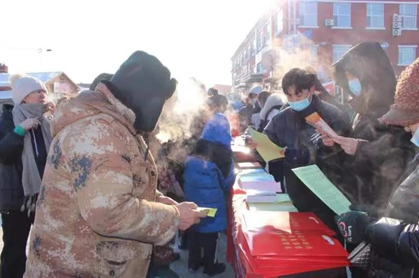 黑龍江經(jīng)濟(jì)網(wǎng)訊( 劉妍 王曉微 記者仉慶華)日前,嘉蔭縣烏云鎮(zhèn)的中心街道上,村民們緊緊環(huán)繞在“除陋習(xí) 樹新風(fēng)”主題宣傳臺周圍,參加由嘉蔭縣新時代文明實(shí)踐中心組織的迎新春綜合宣傳活動?;顒蝇F(xiàn)場,工作人員圍繞黨的十九屆六中全會精神、鄉(xiāng)風(fēng)文明、疫情防控等內(nèi)容開展全方位宣傳,參加活動的群眾認(rèn)真聆聽,時而交流談?wù)?、時而低頭深思,現(xiàn)場其樂融融,一派熱鬧景象。