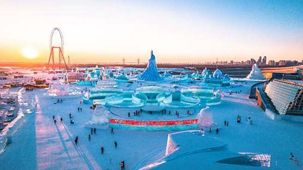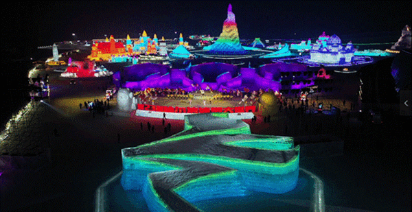據(jù)了解,今年的哈爾濱冰雪大世界以“冬奧之光 閃耀世界”為主題,助力實現(xiàn)“帶動三億人參與冰雪運動”的愿景。冰雪大世界通過打造冰雪童話王國傳遞冬奧精神,園區(qū)內(nèi)的主體景觀都蘊含著冬奧元素。從入園口到主塔“圣火之巔”的軸線上,北京2022年冬奧會會徽、吉祥物以及奧運五環(huán)等景觀有序排布,游客們不但可以賞冰樂雪,還能夠直觀感受到冬奧魅力。