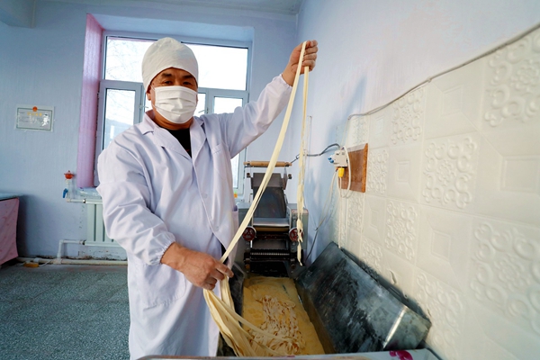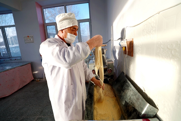 阿木爾林業(yè)局職工王官安已加工出細(xì)的“依林河手搟面”(王力 攝)