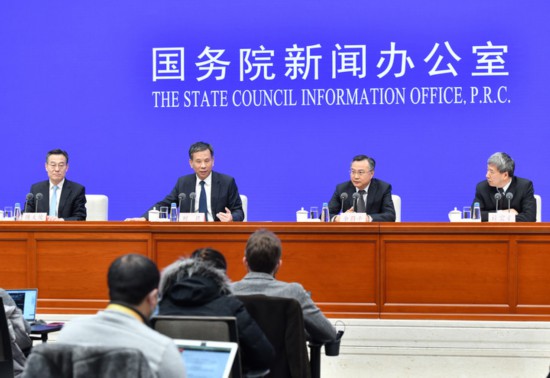 2月22日,財(cái)政部部長劉昆、財(cái)政部副部長余蔚平、財(cái)政部副部長許宏才出席國新辦新聞發(fā)布會。新華社記者李鑫攝