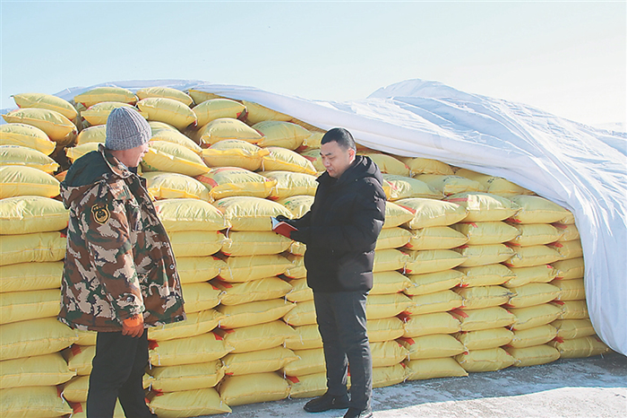 日前,在北大荒集團趙光農(nóng)場有限公司第六管理區(qū)曬場上,幾個人正在對碼放整齊的化肥進行盤點,其中一個人認真地做著記錄,他就是農(nóng)場第六管理區(qū)種植戶劉明亮。