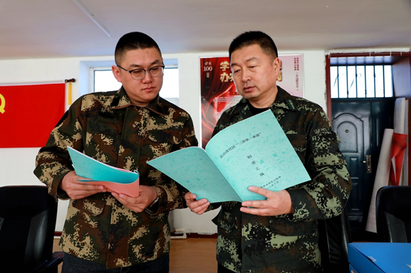 長山林場干部職工正在進一步完善“三清單一承諾”“兩書一函”內(nèi)業(yè)。(王力 攝)