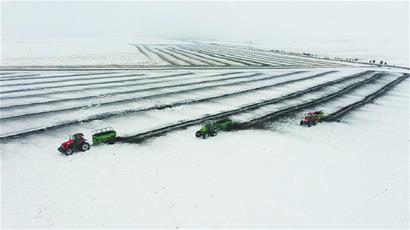 黑龍江經(jīng)濟(jì)網(wǎng)訊(姚愛群 于淑鴻)眼下,黑河遜克省級農(nóng)業(yè)科技園區(qū)的耕地上還覆蓋著厚厚的積雪,可原野上隆隆的機(jī)械揚(yáng)起陣陣飛雪,三臺大型肥料拋撒車和工人頂風(fēng)冒雪開展施肥作業(yè),均勻拋撒著新型有機(jī)肥料——“土壤改良劑”。