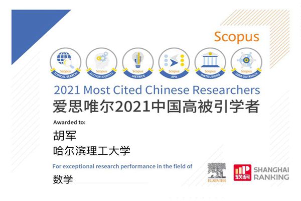 黑龍江經(jīng)濟(jì)網(wǎng)訊(黑龍集日?qǐng)?bào)全媒體見(jiàn)習(xí)記者董廣碩 商祺)近日,全球信息分析公司愛(ài)思唯爾(Elsevier)正式發(fā)布了2021“中國(guó)高被引學(xué)者”(Highly Cited Chinese Researchers)榜單。哈爾濱理工大學(xué)自動(dòng)化學(xué)院院長(zhǎng)、博士生導(dǎo)師胡軍教授在數(shù)學(xué)學(xué)科領(lǐng)域連續(xù)兩年入選高被引學(xué)者。本次全國(guó)共有140位學(xué)者入選本次數(shù)學(xué)學(xué)科領(lǐng)域榜單,黑龍江入選4位。胡軍教授蟬聯(lián)榜單展現(xiàn)了他在數(shù)學(xué)及相關(guān)交叉學(xué)科領(lǐng)域的重要貢獻(xiàn)和廣泛學(xué)術(shù)影響力。