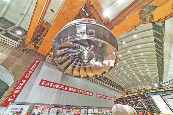 白鶴灘水電站16臺(tái)100萬(wàn)千瓦水電機(jī)組轉(zhuǎn)輪全部吊裝完成。圖片由受訪單位提供