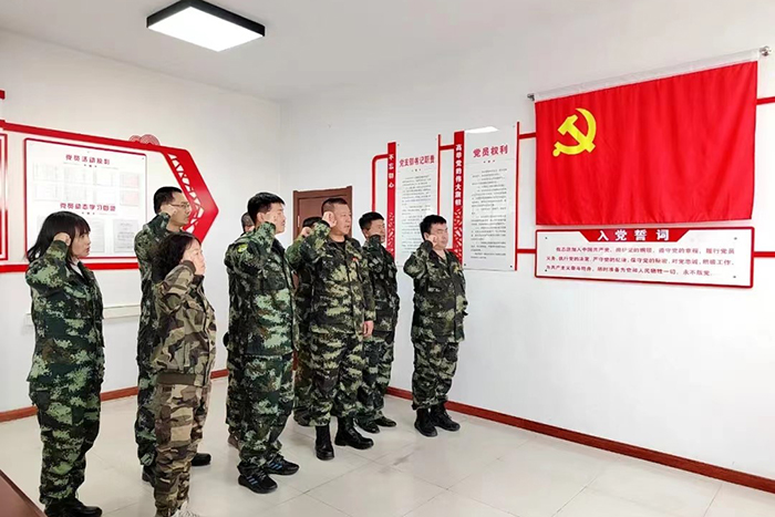 活動的最后,在鮮紅的黨旗下,全體黨員舉起右手,重溫入黨誓詞。當一盞明燈,做一面旗幟,永遠跟黨走的決心絕不動搖;定一個目標,蓄一抹能量,在高質(zhì)量發(fā)展的征途上步履鏗鏘。