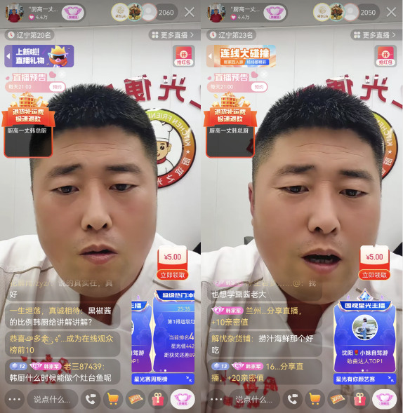 美食課程單場銷售額195萬,快手美食主播“韓總廚”讓家常菜彰顯大價(jià)值