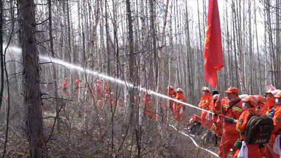 鏡頭二:由林業(yè)局黨委書記魯智勇,黨委委員、工會主席任志遠(yuǎn)組成的森林防火前線指揮部,根據(jù)無人機回傳的實時畫面,果斷下達(dá)撲救命令。他們結(jié)合氣象條件,采取“兩翼對進,鉗形夾擊”的撲火戰(zhàn)術(shù),運用常規(guī)風(fēng)力滅火和以水滅火相配合的方式組織撲救。