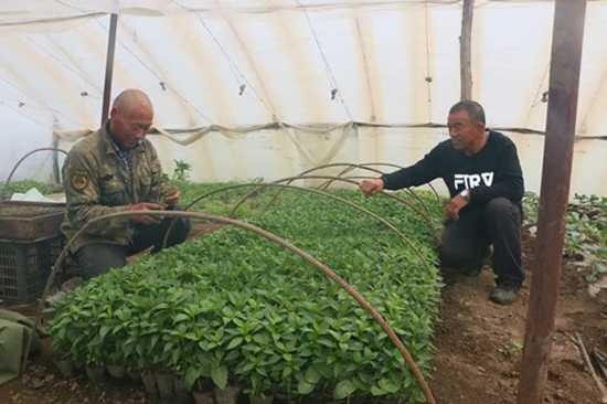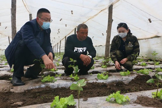 村民常山家的蔬菜大棚里綠意濃濃,盎然春色。他和妻子崔桂芳正在大棚里侍弄秧苗、拔除雜草。