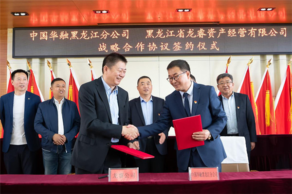 龍睿公司黨委書記、董事長、總經理鄶曉龍,中國華融黑龍江分公司黨委書記、總經理所東斌代表雙方簽訂協(xié)議。龍睿公司副總經理、總會計師王貴軍,董事會秘書、總經理助理陳良謙,中國華融黑龍江分公司副總經理王新潮、風險總監(jiān)田榮成及雙方相關部門負責人參加了簽約儀式。