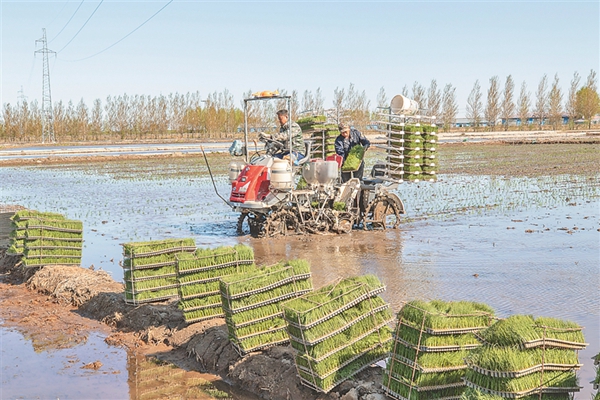 農(nóng)民使用缽育擺栽機(jī)插秧。撫遠(yuǎn)市委宣傳部提供