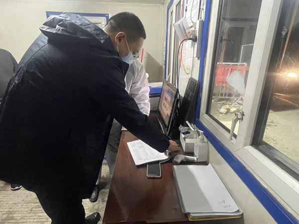 夜訪夜查工作組在公路卡口對入鎮(zhèn)人員信息、卡口消毒記錄、值班人員交接、值班人員是否在崗、是否飲酒等情況進行突擊檢查。隨后,夜訪夜查工作組又來到消防隊值班室,現(xiàn)場隨機詢問了值班人員應急處理程序,并對消防值班人員在崗和消防設施運行等情況進行檢查。