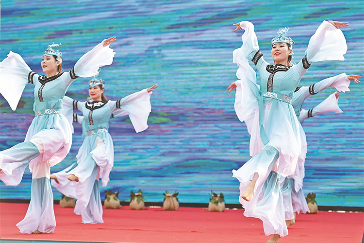 啟動(dòng)儀式后的赫哲族專場演出。黑龍江日報(bào)全媒體記者 荊天旭攝