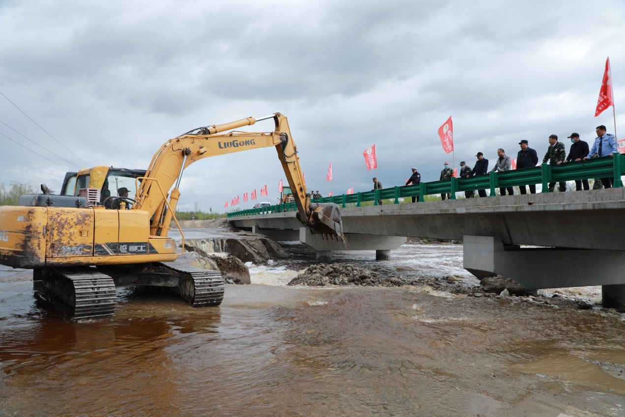 阿木爾林業(yè)局對(duì)楚龍溝大橋進(jìn)行泄洪,確保國道G111交通安全。王力 攝