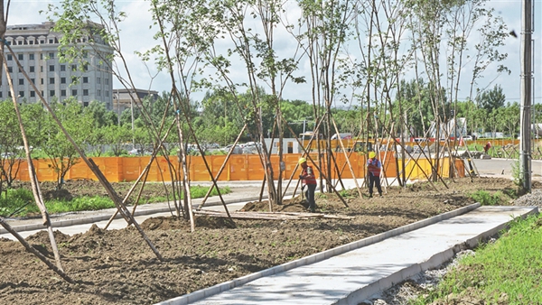 黑龍江日?qǐng)?bào)訊(王藝凝 黑龍江日?qǐng)?bào)全媒體記者薛婧 黑龍江日?qǐng)?bào)全媒體見(jiàn)習(xí)記者董廣碩)近日,記者在哈爾濱新區(qū)的國(guó)貿(mào)中央廣場(chǎng)項(xiàng)目(一期)建設(shè)現(xiàn)場(chǎng)看到,工人們頂著炎炎烈日運(yùn)送建筑材料、栽種路旁的各式綠植。經(jīng)過(guò)近一年的加緊施工,廣場(chǎng)已初具規(guī)模。據(jù)該項(xiàng)目負(fù)責(zé)人介紹,為盡早豐富居民的文化生活,工作人員正搶抓工期,預(yù)計(jì)比原計(jì)劃提前一年完成建設(shè),力爭(zhēng)今年年底前完工。